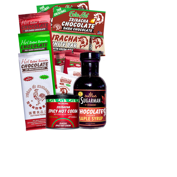 Here's the perfect gift for anyone who loves delicious Chocolate Seasoned with everyone's Favorite Hot Sauce, Sriracha. Sriracha Chocolate Bars, Sriracha Hot Cocoa. What more could you want?